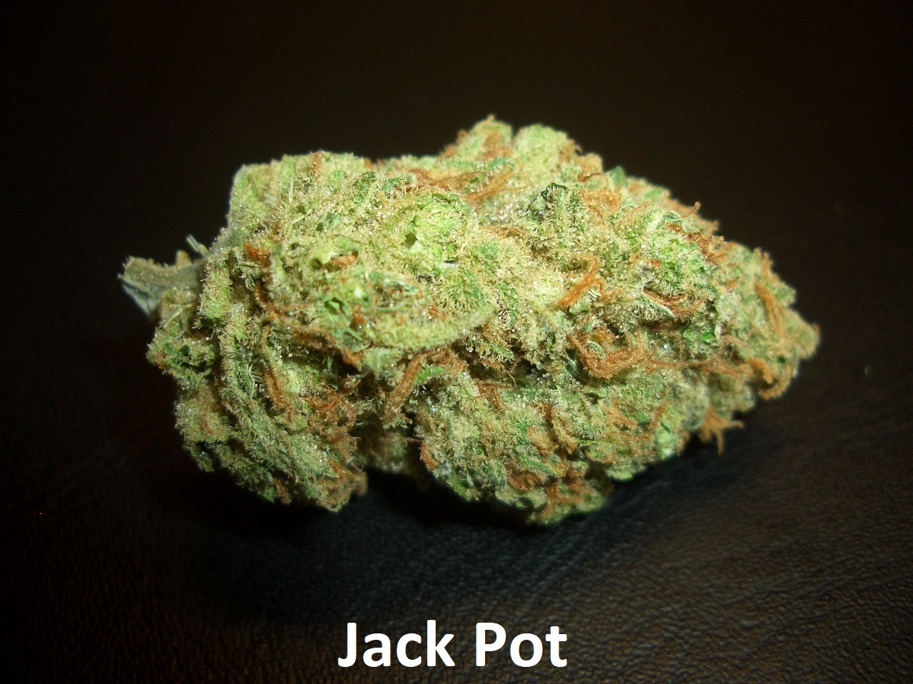 Jackpot is a tasty sativa that mixes genetics from Jack Herer, Northern Lights, and Haze. The three-way combination creates a potent strain with flavors of grape and vanilla. The effects from Jackpot create a cerebral energy that incites creativity and happiness.